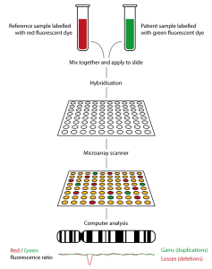 CGH | مولکولی-کروموزومی | کل ژنوم | تغییرات تعداد کپی (CNV) | آنالیز گسترده ژنوم | عدم تشخیص تغییرات نقطهای |